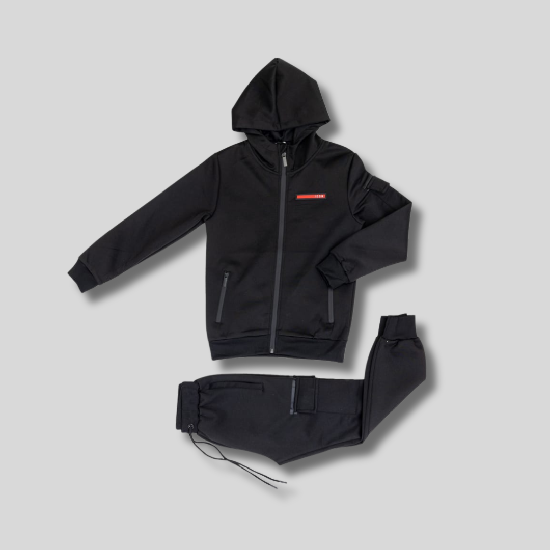 Boom Kids Trainingspak Kleur – Zwart met rode ICON Logo